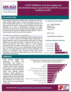 We are pleased to share this summary sheet from the BC People Living with HIV Stigma Index with you! This summary sheet focuses on providing information that could be useful to healthcare providers. We plan to produce more summary sheets like this one for different audiences in the future.