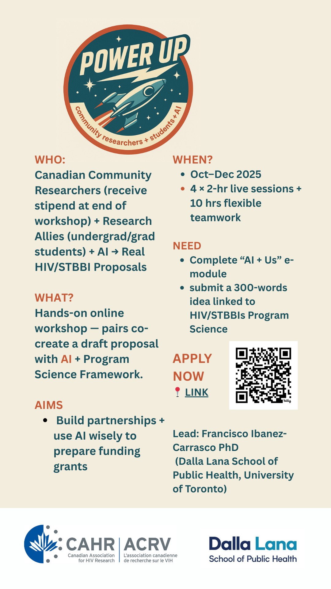 This project is led by Francisco Ibáñez-Carrasco (community-based researcher and digital evangelista, Dalla Lana School of Public Health University of Toronto) in collaboration with the Canadian Association for HIV Research (CAHR).