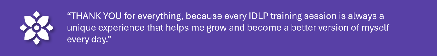 The Managers would like to extend their sincere thanks to the participating PLDI graduates who contributed to the initial brainstorming sessions, as well as to those who attended as participants. This meaningful pilot initiative would not have been possible without the commitment and contributions of the dedicated PLDI Trainers across all three provinces.